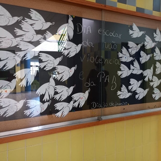 O Dia Escolar da Não Violência e da Paz, comemorado a 30 de janeiro, tem como objetivo alertar a comunidade escolar para a necessidade de uma educação para a paz, que promova valores como o respeito, a igualdade, a tolerância, a solidariedade, a cooperação e a não violência. Assim, os alunos do 6.º A e 6.º C assinalaram o dia com a realização e exposição de trabalhos no átrio da escola. Esta atividade foi dinamizada pelo GAAF na disciplina de Cidadania e Desenvolvimento.